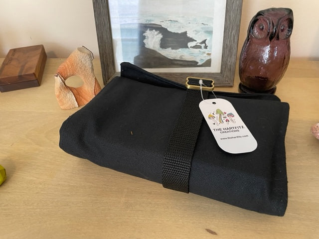 Black canvas and SUSHI KITTIES! Features a vinyl strap and brass strap slide. This kit features brass hardware and a nylon strap.